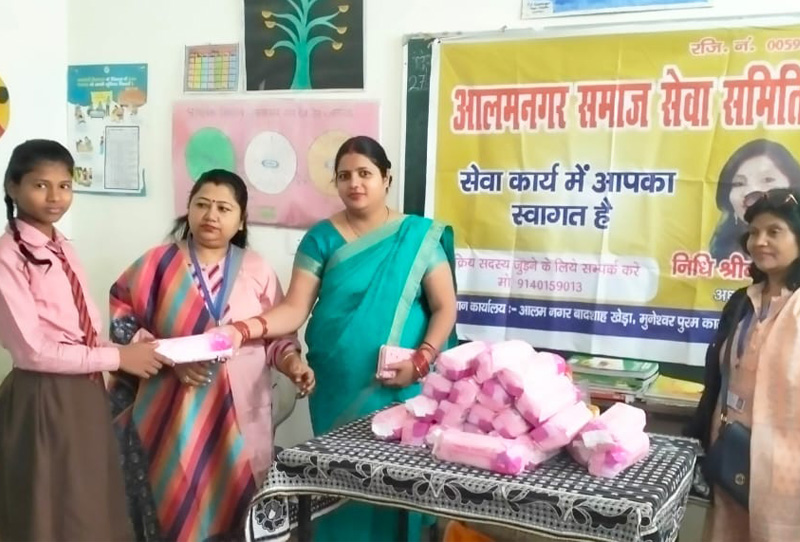 Alamnagar Samaj Seva Samati distributes sanitary napkins, promoting women’s health, dignity, awareness, equality, and confidence for brighter futures.